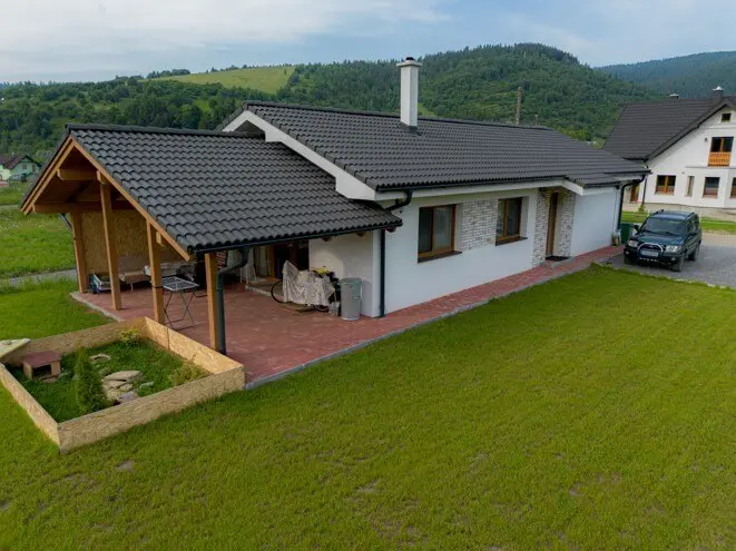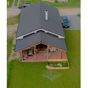 Montovaný vzorový dom sa nachádza v Zuberci v Západných Tatrách. Rozlohou patrí k stredne veľkým domom, Vchod je umiestnený na boku domu, jeho strednej časti. Zo zádveria prejdeme smerom na ľavo, do obývacej časti domu, kde sa nachádza priestranná obývacia izba spojená s kuchyňou. V kuchyni je umiestnená špajza. Alebo prejdeme smerom na pravo kde sa nachádza spálňa a detská izba.. Do kúpeľne je z každej izby len na skok, nachádza sa v strednej časti domu. V spálni sa nachádza malá kúpeľňa, čo určite zvýši pohodlie a komfort bývania. Do samostatného WC a technickej miestnosti sa vchádza zo zádveria. Zastrešená terasa na príjemné posedenie a zároveň dodá drevodomu jedinečný vzhľad.
